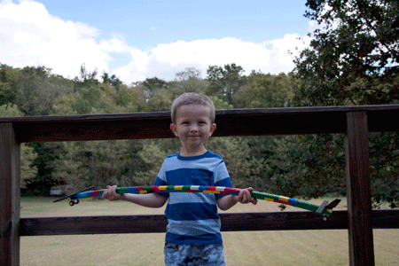 Lucas is really into jets and airplanes and always makes them about 2 feet too long. They break. He cries. Always.